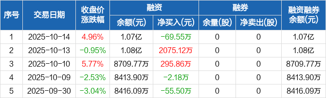 三联锻造:融资净偿还69.55万元,融资余额1.07亿元(10-14)