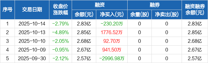 宁波东力:融资净偿还230.2万元,融资余额2.83亿元(10-14)