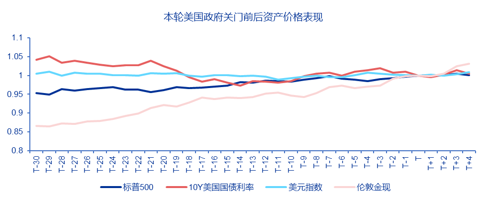 根据美国白宫文件《政府关门的经济影响》,政府每“停摆”一周,经济增速将下降0.2个百分点,如果对比现在的GDP水平,大概是每周150亿美元的损失,同时一个月的政府关门将导致43000的新增失业人群。另一方面,由于美国联邦政府员工被迫休假,关键数据将延迟公布,导致美联储需要在更大的不确定下做出下一个利率决定,同时也会对企业的决策做出影响,最终不确定性将导致企业投资减少和金融市场的波动加剧。