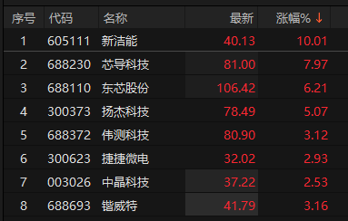 上证报中国证券网讯 10月15日早盘,半导体板块震荡拉升,截至9时31分,新洁能涨停,芯导科技涨近8%,东芯股份涨逾6%,中晶科技、捷捷微电等跟涨。