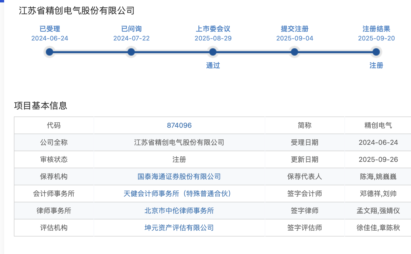 2025年8月29日,江苏省精创电气股份有限公司(下称“精创电气”)已成功过会,即将登陆北京证券交易所。作为一家国家级专精特新“小巨人”企业,精创电气报告期内业绩稳健增长,2024年境外业务占比突破54%,展现出良好的全球化布局。