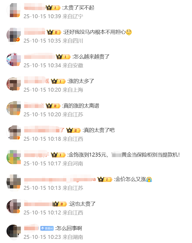 网友纷纷吐槽:“太贵了买不起”“黄金当保险柜别当提款机”。