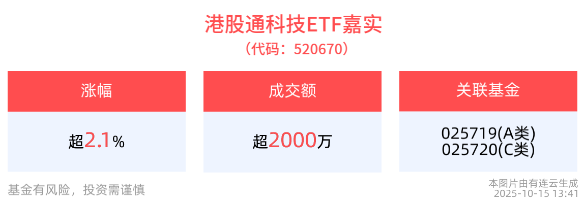 港股成资金布局中国硬科技重要阵地,港股通科技ETF嘉实(520670)午后拉升涨超2%