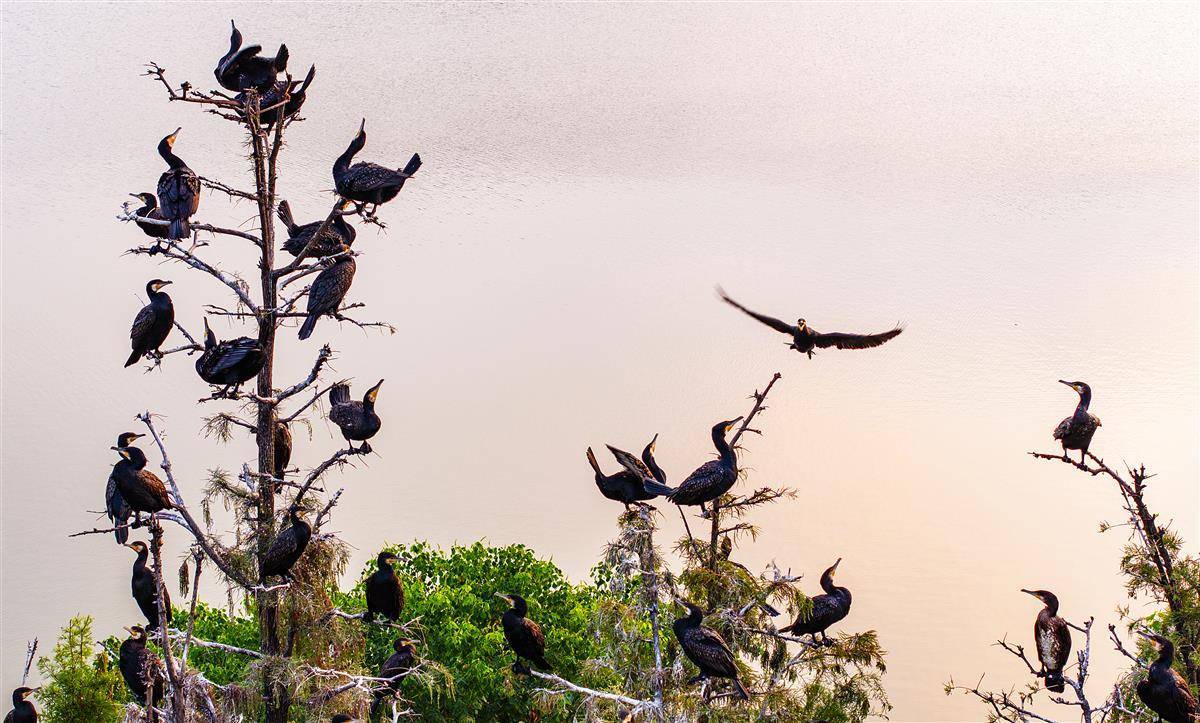 武汉下雪了?鸬鹚 “涂白” 东湖鸟岛