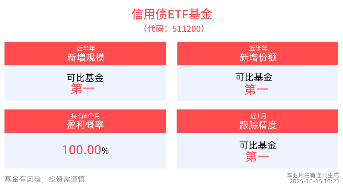 截至2025年10月15日10:21,信用债ETF基金(511200)多空胶着,最新报价100.22元。截至10月14日,流动性方面,信用债ETF基金近1月日均成交61.45亿元,排名可比基金第一;跟踪精度方面,信用债ETF基金近1月跟踪误差为0.005%,在可比基金中跟踪精度最高。