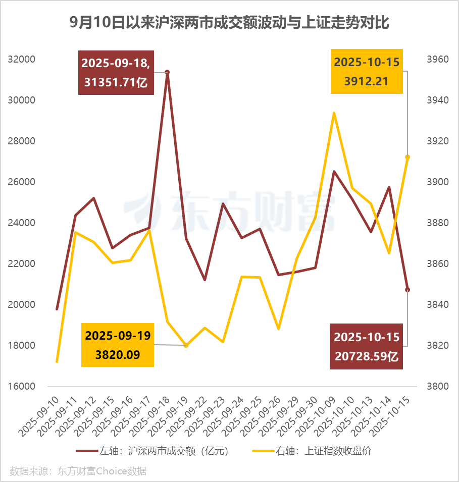 数据显示,两市成交额仅2.07万亿元,为9月10日以来最低的一天。