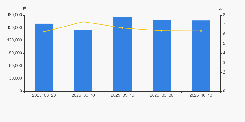2025年8月29日至今,公司股东户数有所增长,区间涨幅为4.82%。2025年8月29日至2025年10月10日区间股价上涨1.28%。
