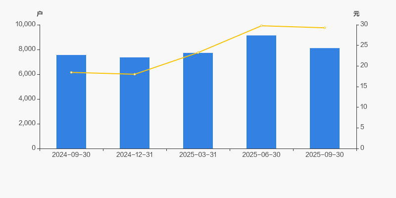 2024年9月30日至今,公司股东户数有所增长,区间涨幅为7.36%。2024年9月30日至2025年9月30日区间股价上涨58.57%。