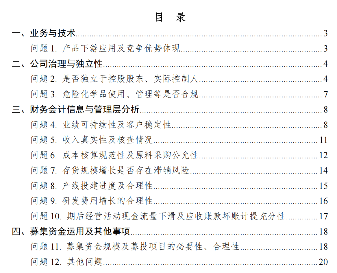 10月15日,烟台九目化学股份有限公司(简称“九目化学”)在北交所更新上市申请审核动态,公司已收到第一轮审核问询函,问题主要涉及,产品下游应用及竞争优势体现,是否独立于控股股东、实际控制人,危险化学品使用、管理等是否合规等。