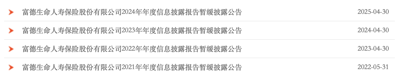 另外,记者发现,自2021年起至今,富德生命人寿便按下年报披露的“暂停键”,已连续4年暂缓披露年报。