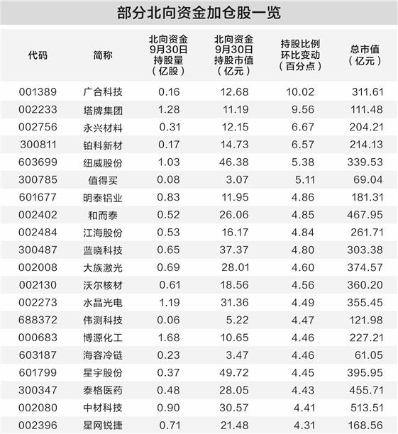 陆股通三季度末持股市值环比增长超12%