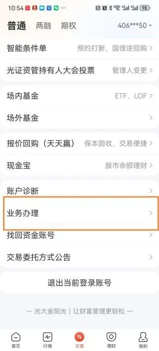 第一步,在券商APP中找到“业务办理”;
