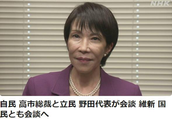 报道称,在公明党退出执政联盟的情况下,预计高市将在会谈中,希望各党在国会运营等方面给予支持。