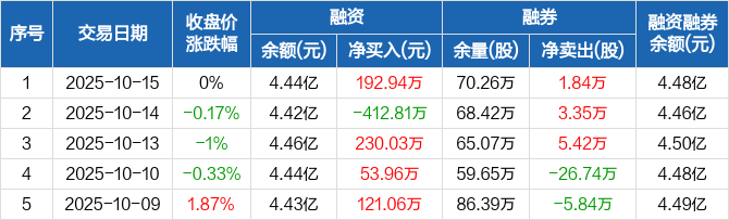彩虹股份:融资净买入192.94万元,融资余额4.44亿元(10-15)