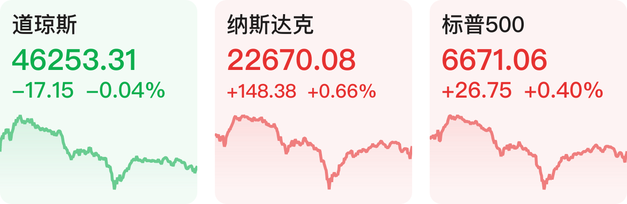 周三(10月15日),美股三大指数收盘涨跌不一,截至收盘,道指跌0.04%,纳指涨0.66%,标普500指数涨0.4%,热门科技股多数上涨,AMD涨超9%,英特尔涨超4%,谷歌、博通涨超2%,特斯拉涨超1%。纳斯达克中国金龙指数收涨1.7%,热门中概股多数上涨,新东方涨超10%,世纪互联涨超4%,哔哩哔哩涨超2%,阿里巴巴、小鹏汽车、百度、京东涨超1%,爱奇艺跌超3%。