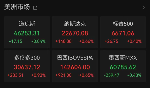 当地时间10月15日周三,美股三大股指收盘涨跌不一。截至收盘,道指跌0.04%,报46253.31点;纳指涨0.66%,报22670.08点;标普500指数受美国银行与摩根士丹利亮眼财报提振,在震荡中收高,收涨0.4%,报6671.06点。纳斯达克中国金龙指数收涨1.7%,热门中概股多数上涨。