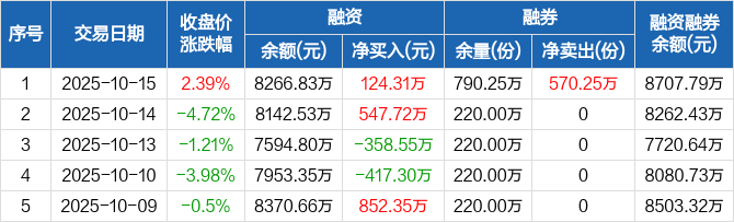创业板成长ETF:融资净买入124.31万元,融资余额8266.83万元(10-15)