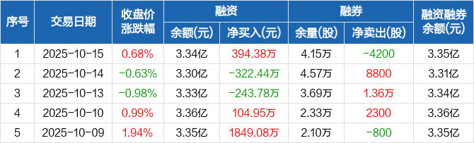 正丹股份:融资净买入394.38万元,融资余额3.34亿元(10-15)
