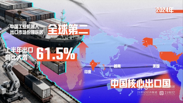 2024年,中国工业机器人出口市场份额跃居全球第二