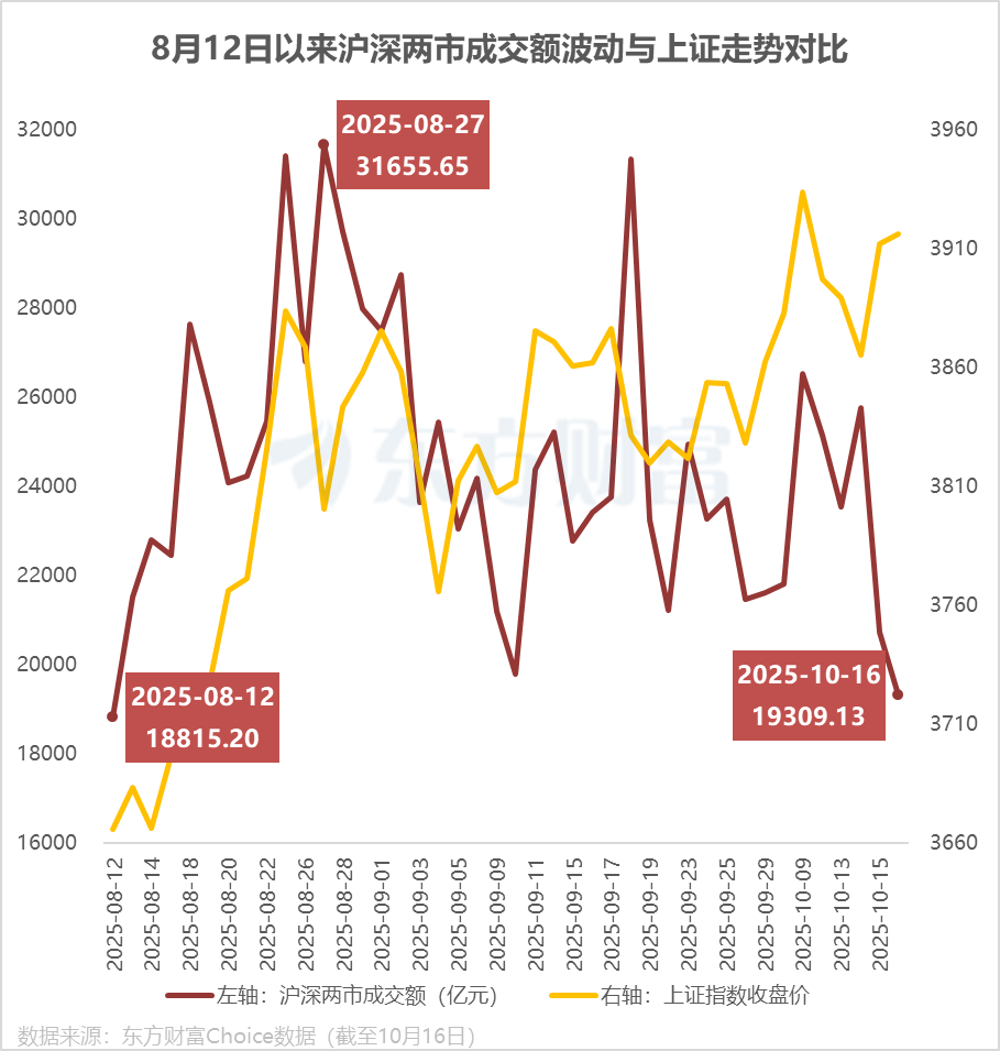 就像昨天,2万亿出头的成交额算是偏低了,没想到今天又缩了点,只剩约1.95万亿元(沪深两市则为1.93万亿元)。