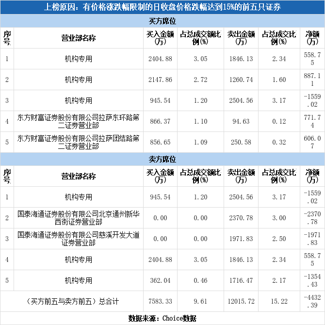 多主力现身龙虎榜,联合化学跌停(10-16)