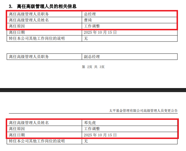 【导读】太平基金总经理、副总双双离任,董事长代任总经理