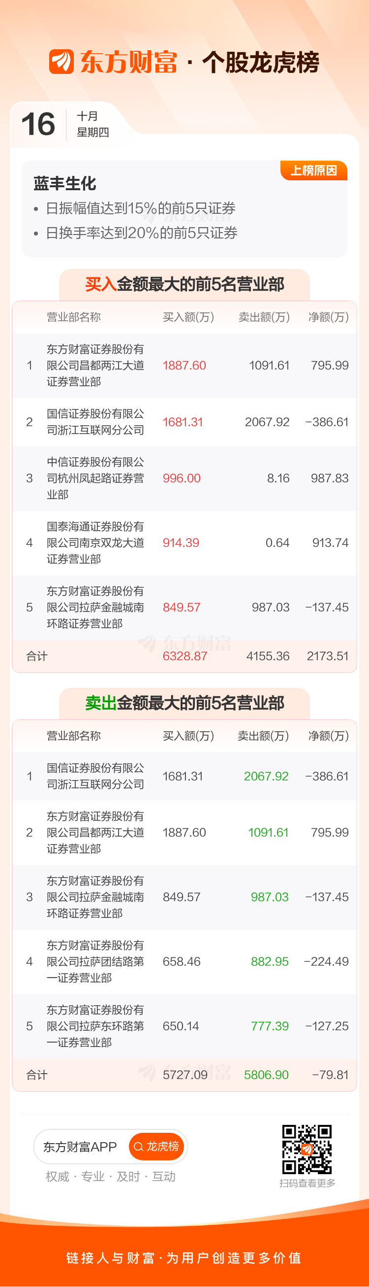 蓝丰生化(002513)龙虎榜数据(10-16)