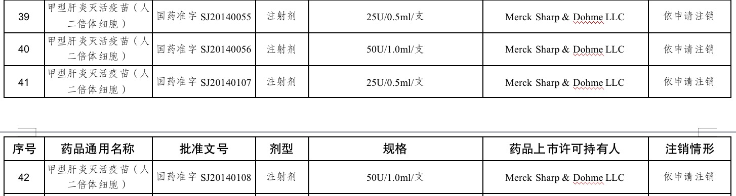 10月15日,界面新闻记者从国家药品监督管理局获悉,根据《中华人民共和国药品管理法实施条例》《药品注册管理办法》有关规定,国家药品监督管理局决定注销默沙东甲型肝炎灭活疫苗(人二倍体细胞)(下简称:默沙东甲肝疫苗)。