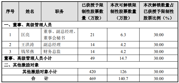 无锡振华141万股限制性股票将于10月23日解禁上市