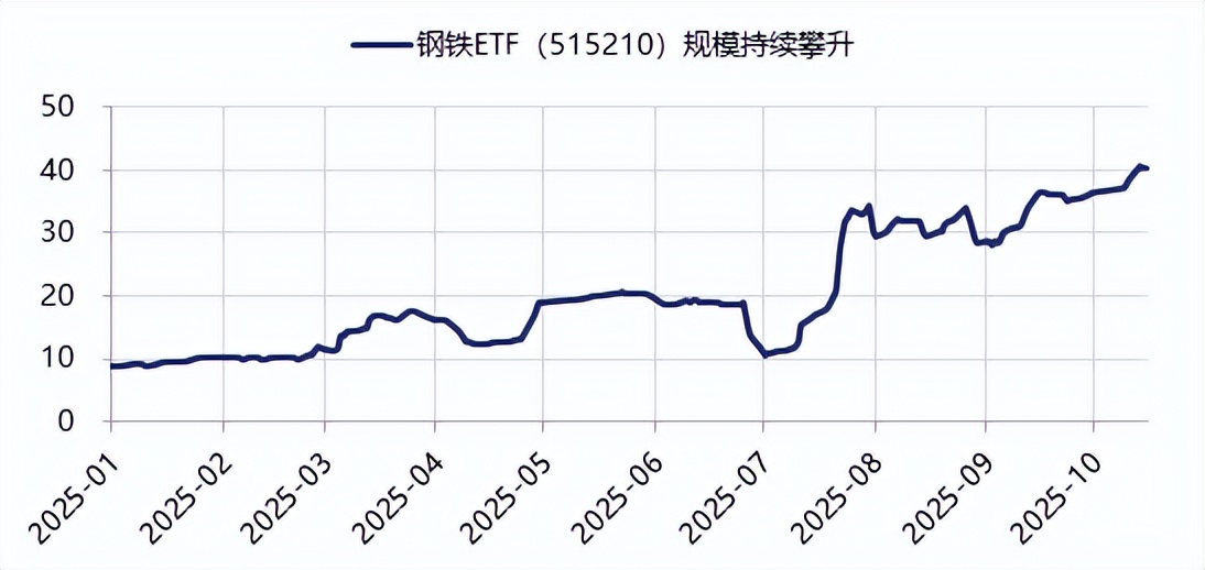 4月以来,中证钢铁指数与上证指数涨幅大体相当,并无明显超额。在当前部分板块估值较高、部分资金或选择获利了结的情况下,部分资金高切低,资金持续流入钢铁ETF(515210),截至10月14日,钢铁ETF规模超40亿,9月以来吸金超10亿。