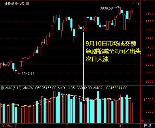 另外,今天市场成交额回到了2万亿元之内,上一次接近2万亿元是9月10日,当时刚好2万亿元出头。就在投资者担心市场成交的时候,上证指数于次日迎来了1.65%的上涨。