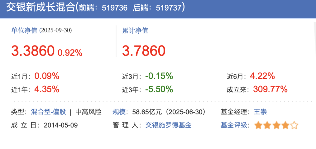 以王崇管理的交银新成长混合为例,前十大重仓股中江苏银行、宁波银行、苏州银行、南京银行和中国平安占居了六席,导致交银新成长混合近三年的业绩表现不佳,排名垫底;截至9月30日,该基金近三年亏损5.5%。