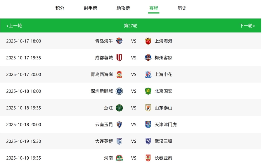 中超第27轮赛程,18日、19日的比赛,央视五套转播苏超,中超放在其余频道直播。