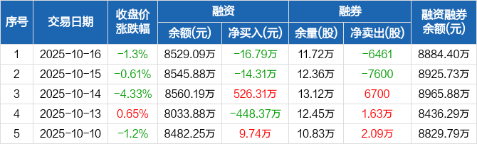 三一重能:融资净偿还16.79万元,融资余额8529.09万元(10-16)