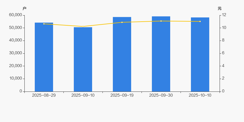 截至2025年10月10日,公司最新总股本为5.88亿股,其中流通股本为4.56亿股。户均持有流通股数量由上期的7704股上升至7816股,户均流通市值8.62万元。