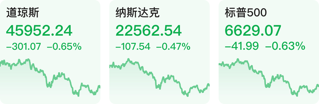 周四(10月16日),美股三大指数集体收跌,截至收盘,道指跌0.65%,纳指跌0.47%,标普500指数跌0.63%,热门科技股涨跌互现,特斯拉、AMD跌超1%,英伟达涨超1%,甲骨文涨超3%,微软跌0.35%,Meta跌0.76%,英特尔跌0.83%。存储概念股上涨,美光科技涨超5%,西部数据涨超4%。热门中概股多数下跌,纳斯达克中国金龙指数收跌0.91%。世纪互联跌超5%,金山云跌超2%,小鹏汽车、京东跌超1%,阿里巴巴跌0.49%,哔哩哔哩涨超1%。