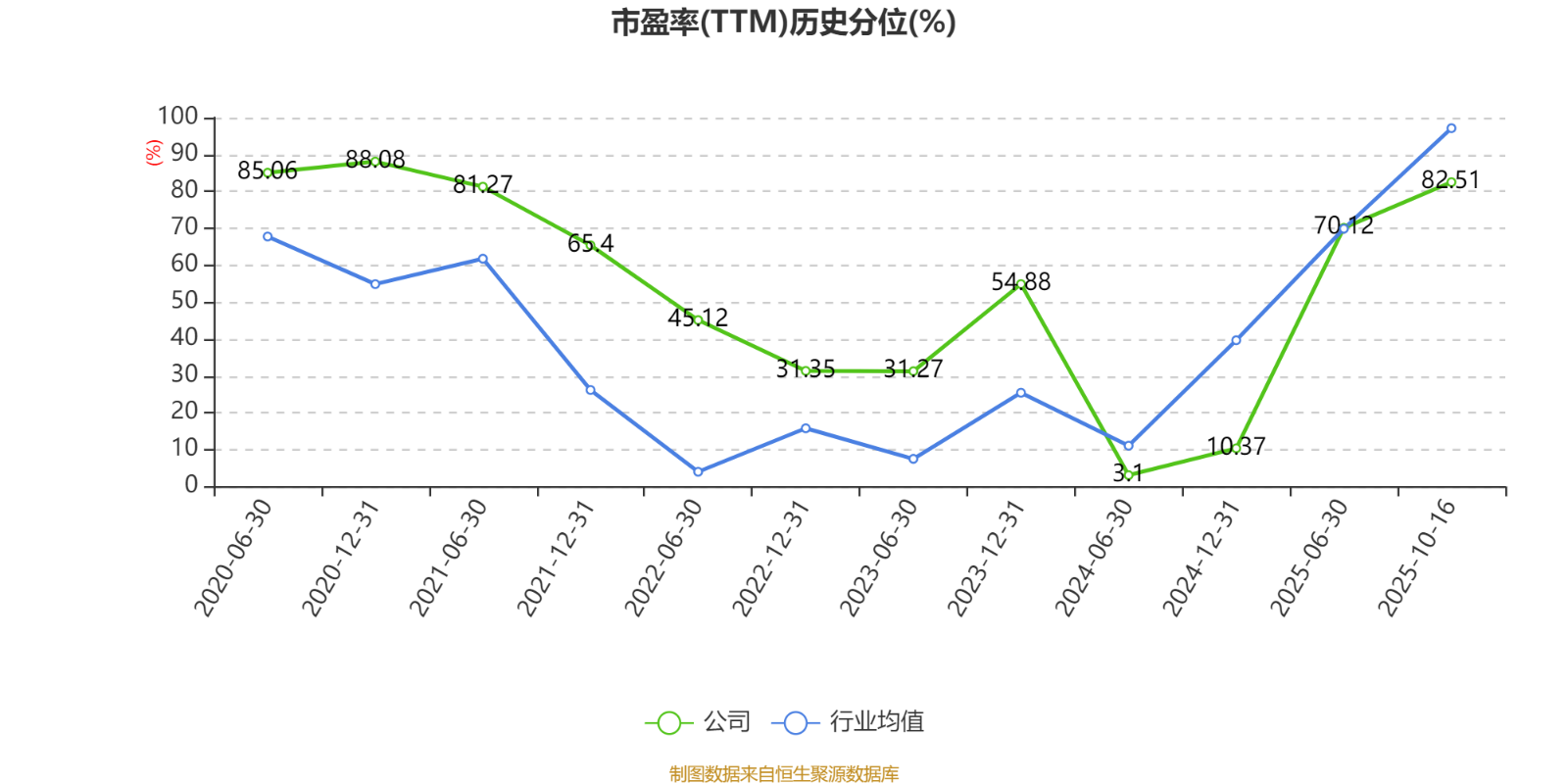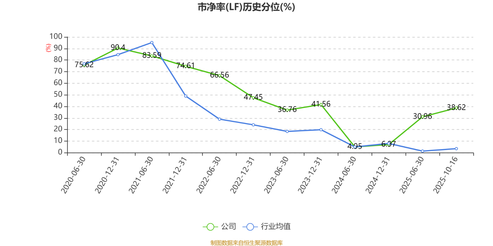 市盈率、市净率为负时,不显示当期分位数,会导致折线图中断。