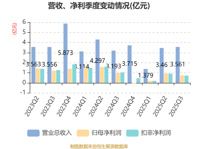 2025年前三季度,公司流动比率为5.85,速动比率为5.49。