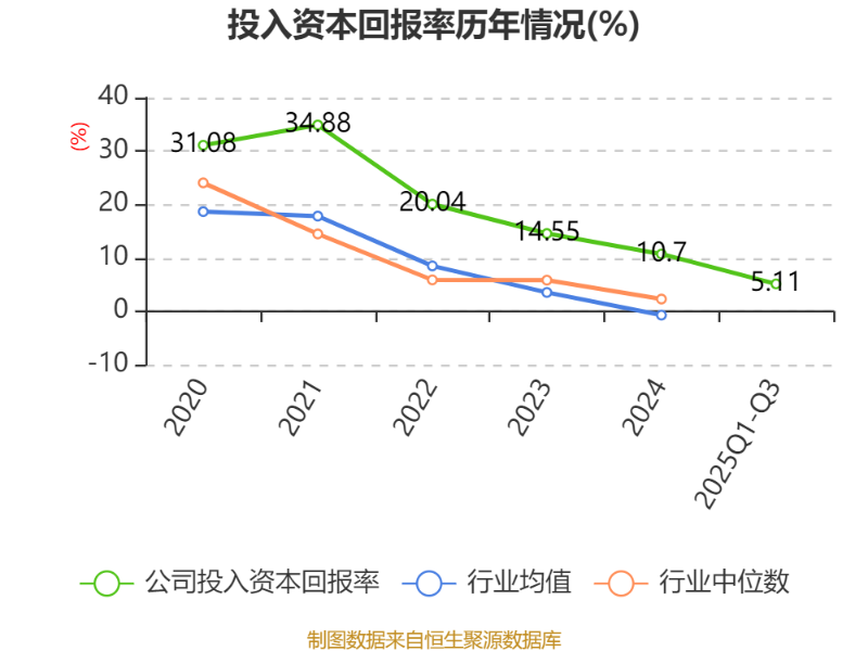 盈利能力方面, 2025年前三季度公司加权平均净资产收益率为5.43%,同比下降6.11个百分点。公司2025年前三季度投入资本回报率为5.11%,较上年同期下降5.77个百分点。