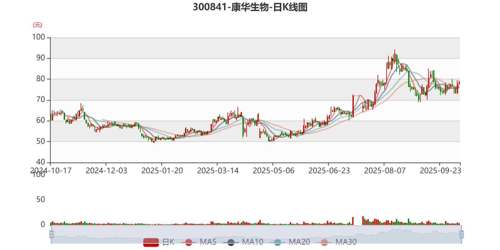 以10月16日收盘价计算,康华生物目前市盈率(TTM)约为56.08倍,市净率(LF)约2.91倍,市销率(TTM)约8.42倍。