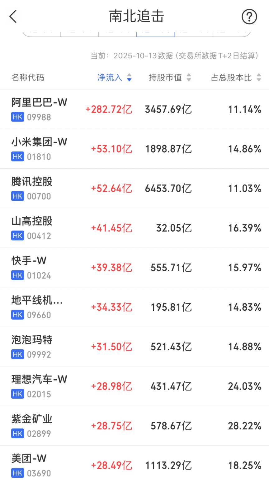 从个股来看,格隆汇数据显示,近10个交易日,阿里巴巴、小米集团、腾讯控股位列资金净流入额前三位;此外,快手、泡泡玛特、理想汽车、紫金矿业和美团等个股也持续获得资金买入。