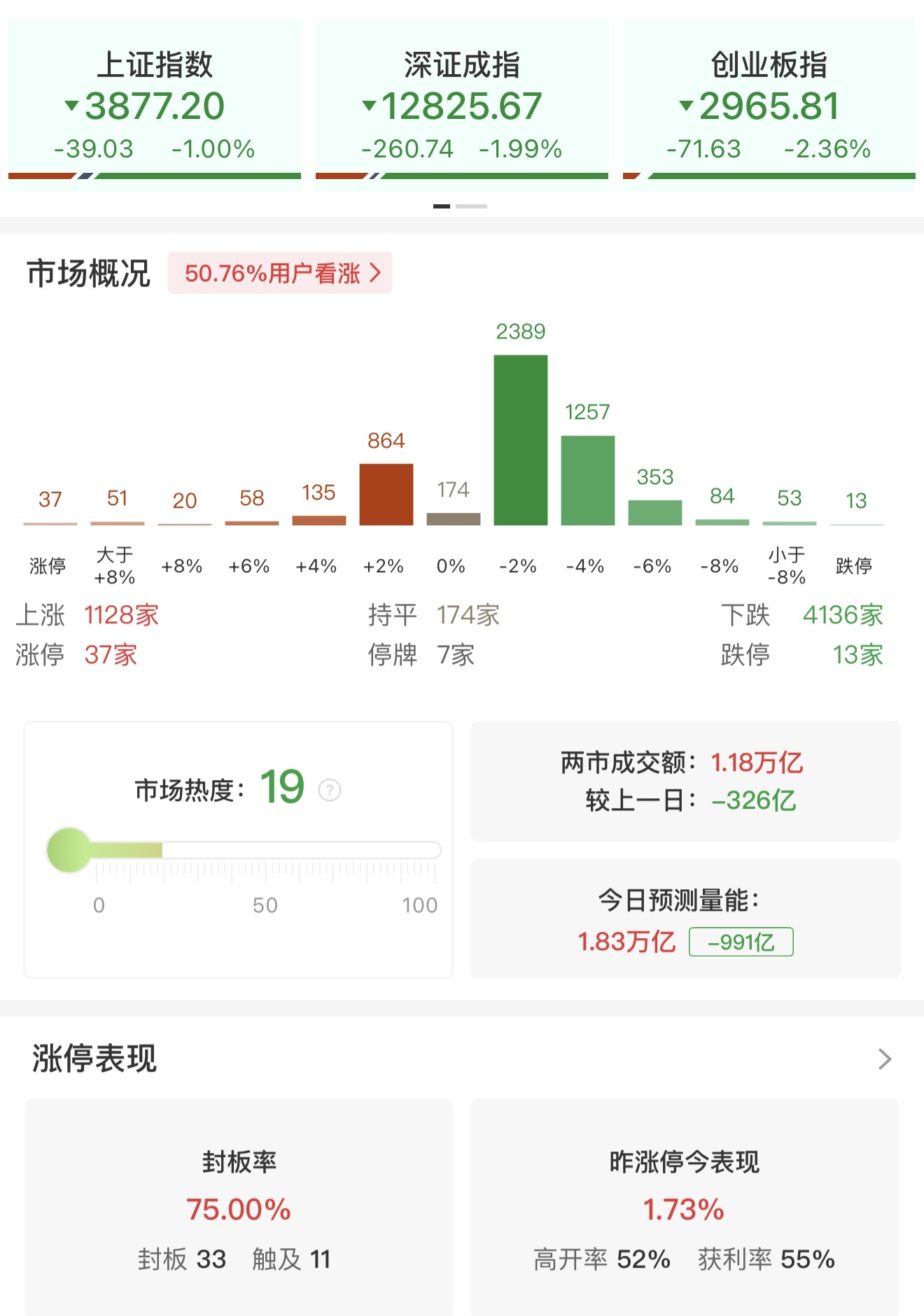 财联社10月17日电,市场早盘震荡下挫,深成指、创业板指跌逾2%。沪深两市半日成交额1.18万亿,较上个交易日缩量326亿。盘面上热点较为杂乱,港口航运板块延续强势,海通发展2连板。防御类板块表现活跃,煤炭、燃气股集体走强,大有能源6天5板,国新能源盘中4天3板。银行板块震荡拉升,农业银行盘中涨超2%创历史新高。下跌方面,数据中心电源概念重挫,伊戈尔、中恒电气跌停。此外,多只权重走弱,阳光电源、中兴通讯、立讯精密大跌。板块方面,燃气、贵金属、港口航运、煤炭等板块涨幅居前,风电、光伏等板块跌幅居前。截至收盘,沪指跌1%,深成指跌1.99%,创业板指跌2.37%。