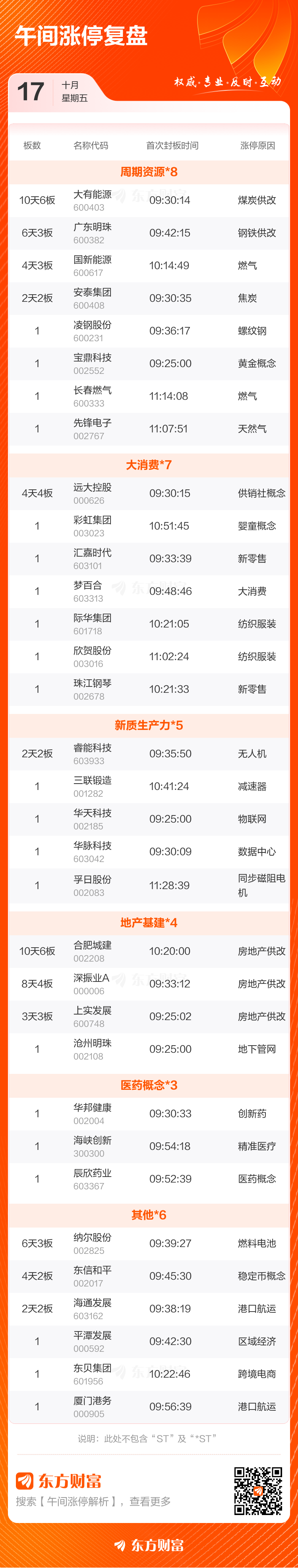 10月17日午间涨停复盘:37股涨停 大有能源10天6板