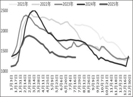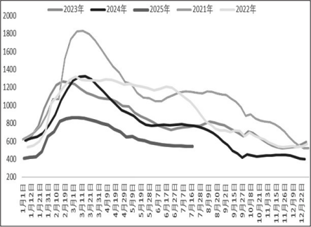 2024年,内需下滑明显。继房地产市场持续下行后,2024年,传统基建项目叫停,进一步影响了基建需求,导致其下滑。在此情况下,钢材面临高产量和高库存的双重压力。经过持续一年的减产和跌价去库后,2025年库存基数处于低位水平。截至2025年7月,五大材库存同比下降24%。
