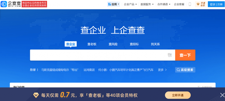 企查查官网页面