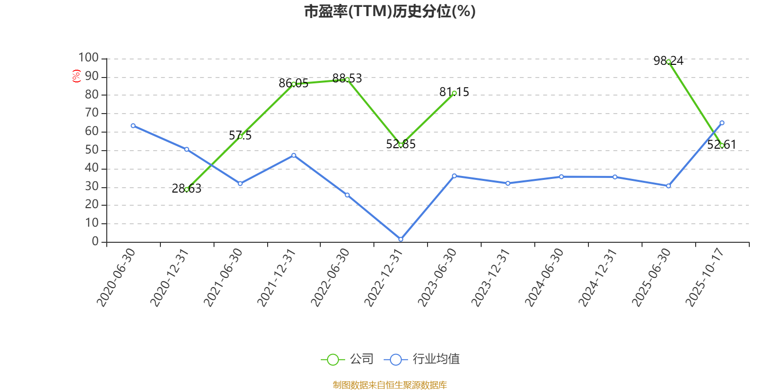 市盈率、市净率为负时,不显示当期分位数,会导致折线图中断。