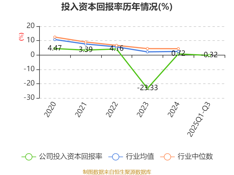 盈利能力方面, 2025年前三季度公司加权平均净资产收益率为-0.94%,同比上升1.84个百分点。公司2025年前三季度投入资本回报率为-0.32%,较上年同期上升0.29个百分点。