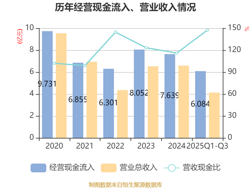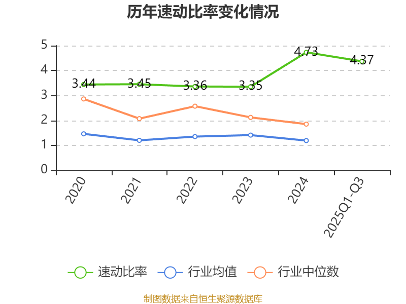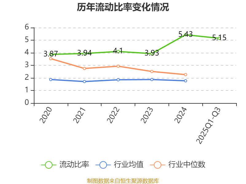 2025年前三季度,公司流动比率为5.15,速动比率为4.37。