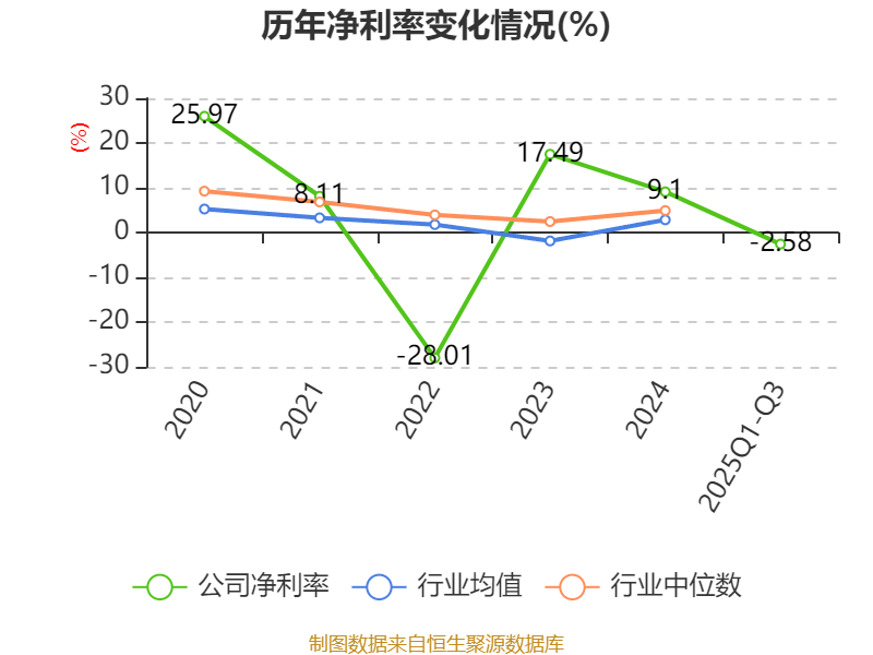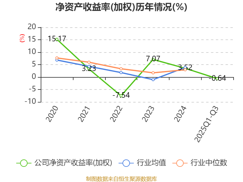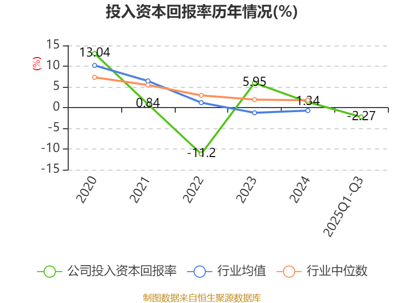 盈利能力方面, 2025年前三季度公司加权平均净资产收益率为-0.64%,同比上升2.21个百分点。公司2025年前三季度投入资本回报率为-2.27%,较上年同期上升2.63个百分点。