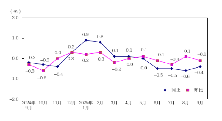 9月深圳PPI同比下降0.4% 环比下降0.1%